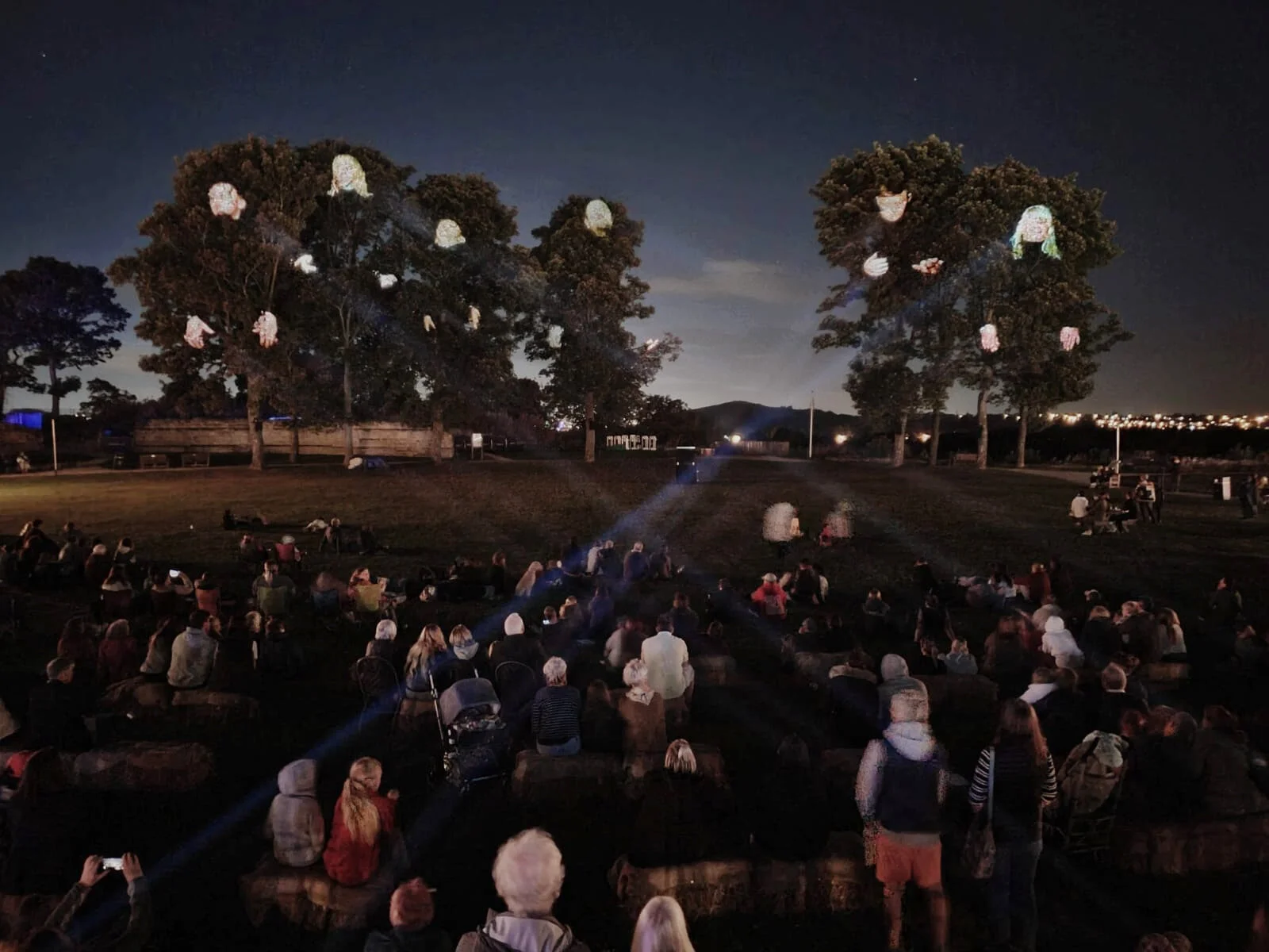 Over two nights at Pontefract Castle (25 & 26 September 2021), the trees atop the castle, looking out to the landscape beyond, were transformed into giants; representatives of the town’s ancestors and their sacred connection to the environment.