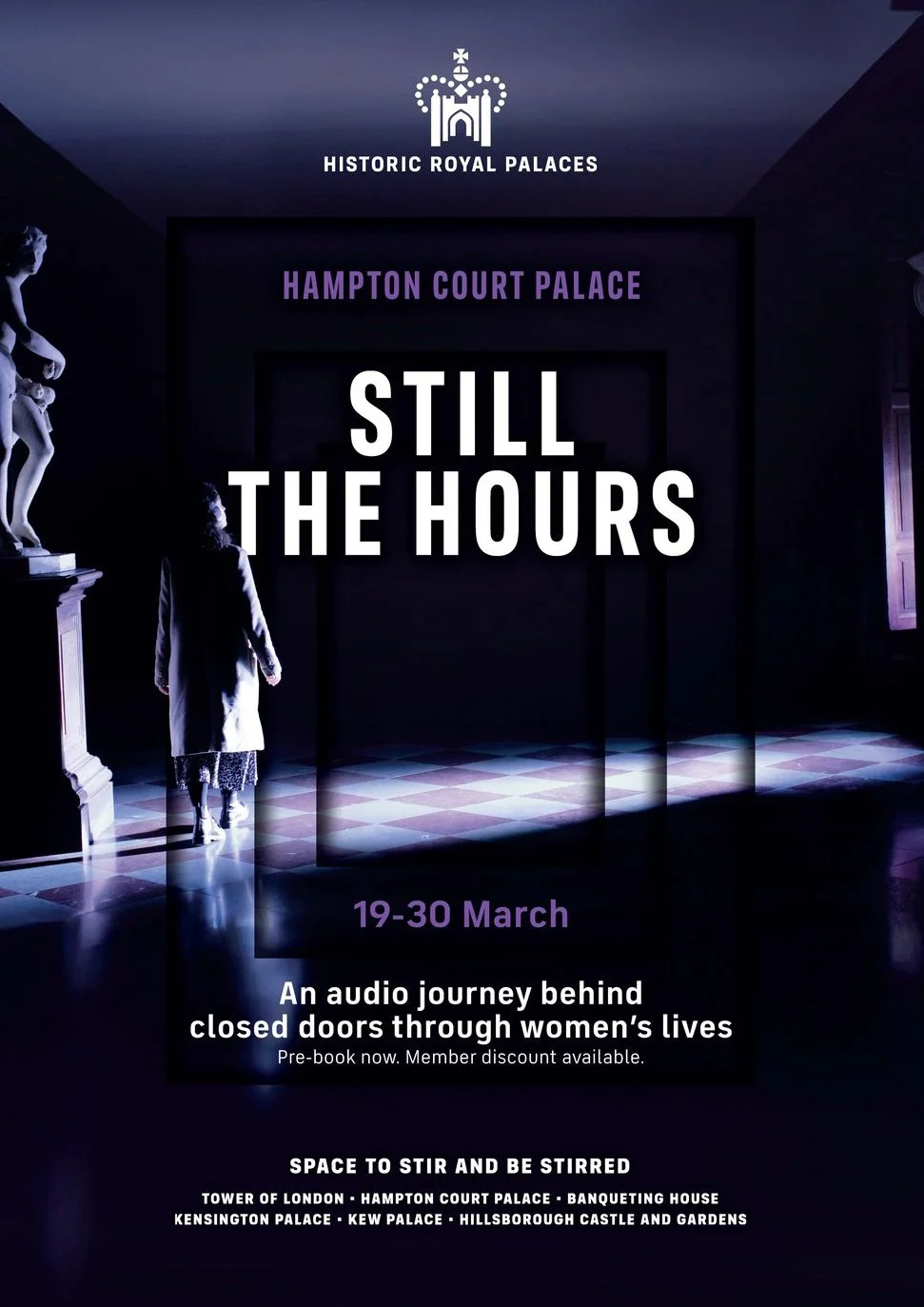 Still The Hours is an audio-led journey through Hampton Court Palace after hours. Conceived from the stories of women who lived or worked in the palace from 1541 to 1925, the promenade experience blends binaural audio with site-specific spatial sound across the palace’s rooms.